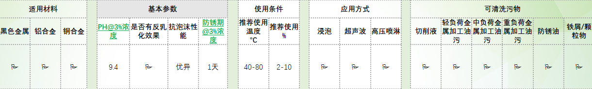 不含磷优异的清洗力和分油能力工件残留极低有较好的铝保护能力 通用性极强