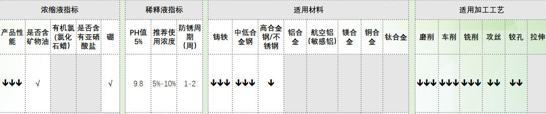 a)环保型乳化液设计,不含任何禁用物质b)微乳液设计,乳化液液滴更小,带出量更少,液更稳定,寿命更长c) 防锈性能优异d) 抗杂油性能优异,抗菌性优异e) 润滑性能优异