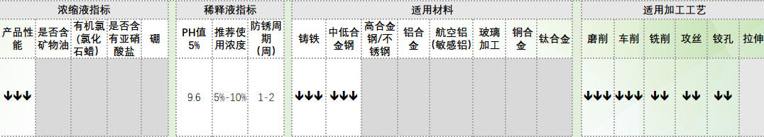 a)环保型乳化液设计,不含任何禁用物质b) 优异的冲洗性能C) 磨灰沉降性能好c) 全合成产品,带出量更少,液更稳定,寿命更长d) 使用浓度低,消耗低