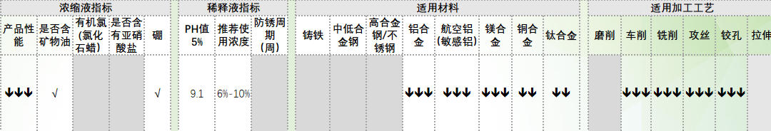 a)环保型乳化液设计,不含任何禁用物质)b) 适用敏感铝,镁合金的机加工, 非常优异的抗铝腐蚀性能与抗镁腐蚀性能 ;c) 乳化液液滴更小,带出量更少,液更稳定,寿命更长d) 使用浓度低,消耗低