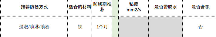 防锈能力强,残留低,适用于各种复杂的适用环境中,特别适用于过程检测防锈;(如:超声波检测工序)